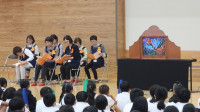 音楽室で、けんばんハーモニカを使って、とても上手に演奏をしていました。