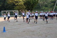 1,2年生は、紅白リレーの練習をしていました。今日は初めての練習なので、2チームで走る練習をしました。次の練習は、4チームで競争です。1年生も初めてのリレー。一人半周を頑張って走ります。