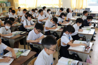 【3年生】グループ学習です。大事な部分に線を引いてノートをまとめています。